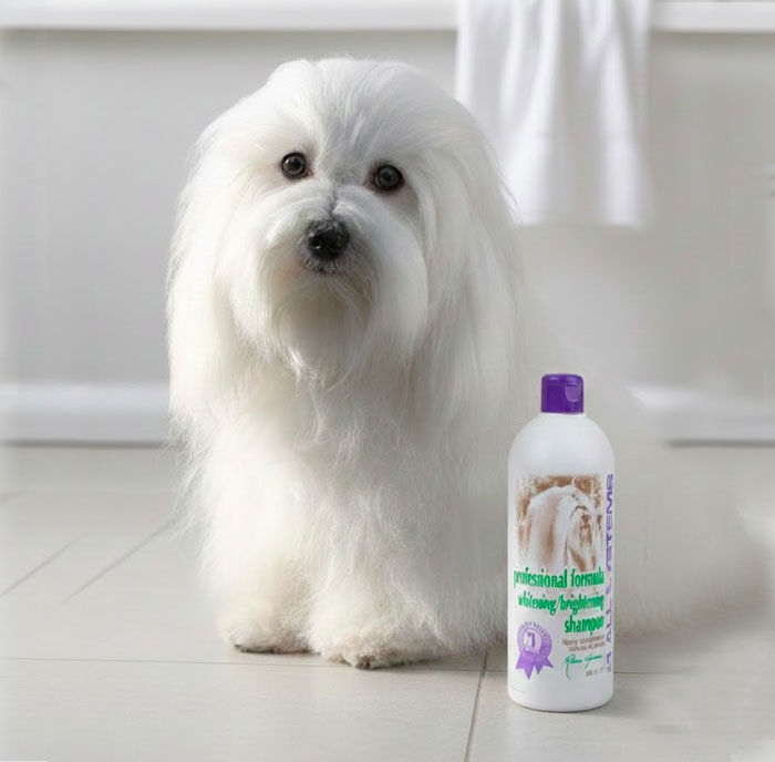 Professional Formula Whitening shampoo er fremstillet med henblik på at fjerne misfarvning og -lugt. Produktet virker samtidigt blødgørende og fremhæver desuden pelsens naturlige glans.