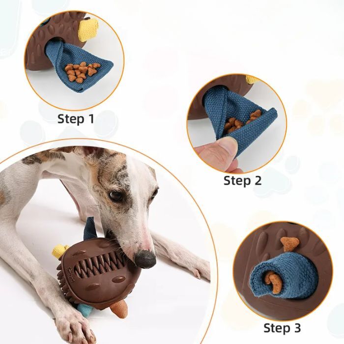 DogLemi Pelle Pindsvin aktivitetslegetøj er mere end blot sjov leg – det er også en effektiv måde at aktivere din hunds lugtesans og problemløsningsevner. Det skjulte rum til godbidder forlænger legen, mens åbningen i bunden giver mulighed for at gemme et tyggeben eller en snack, der kan holde din hund beskæftiget i længere tid. Perfekt til indendørs aktivering på regnvejrsdage eller som en sjov del af hverdagen.