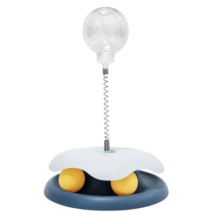 På toppen sidder der en fjeder der får beholderen til at vippe fra side til side, når kæledyret rammer den. Når der skubbes til legetøjet frigives godbidderne, hvilket er med til at stimulere både fysisk og mentalt.