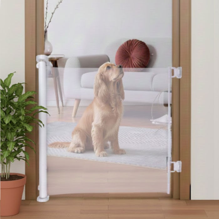 Gitteret er fremstillet i et stærkt, gennemsigtigt mesh-materiale, som både sikrer høj synlighed og forhindrer, at din hund kommer til skade. Det stilrene og neutrale design passer ind i de fleste hjem og gør det nemt at opretholde et pænt og ryddeligt udtryk.