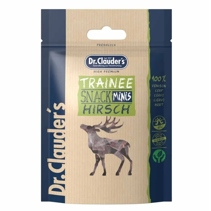 Dr. Clauders Trainee godbidder | Hjort er udviklet til dig, der ønsker en lækker og motiverende belønning til dit kæledyr. Med et højt indhold af hjortekød får din hund eller kat en intens og naturlig smag, som gør træningen både sjovere og mere effektiv. De små, bløde godbidder er perfekte til gentagne belønninger under hundetræning og som forkælelse i hverdagen.