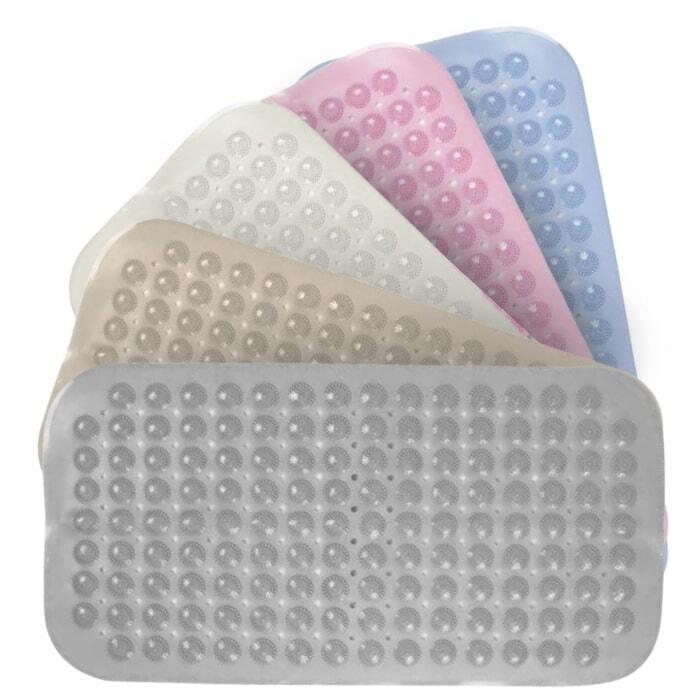 Bademåtten har sugekopper under og et præget mønster på oversiden, som gør måtten særdeles skridsikker. Kan både bruges i brusekabine, badekar eller en stor vask.