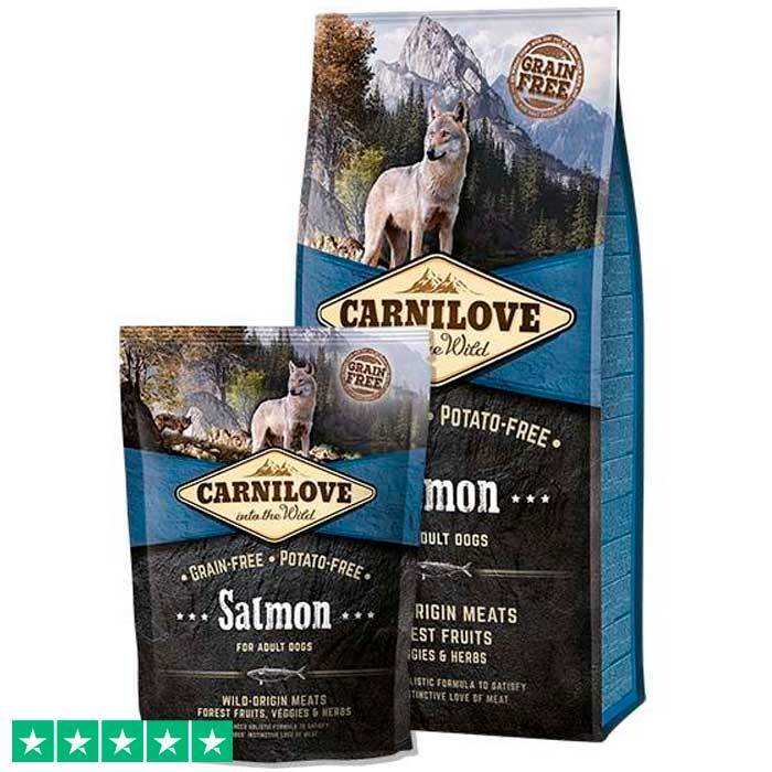 Carnilove Samlon hundefoderet består af 70% kød af vild oprindelse og 30% vilde bær, grøntsager og urter.