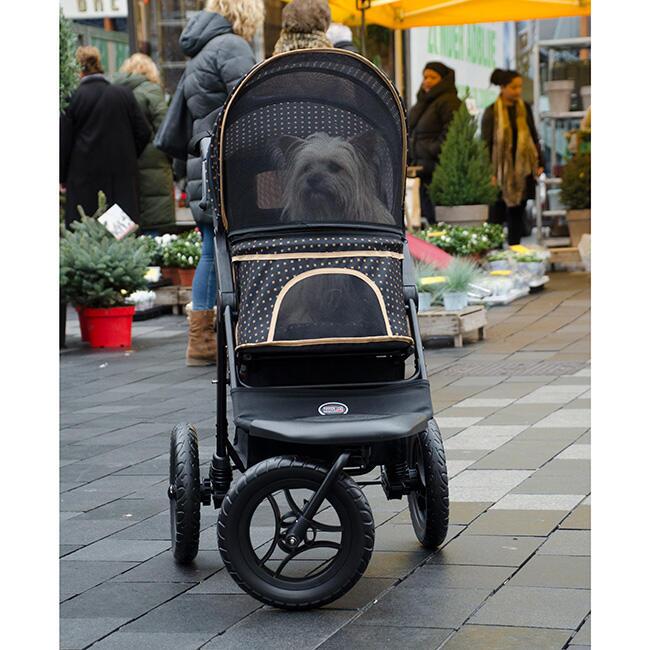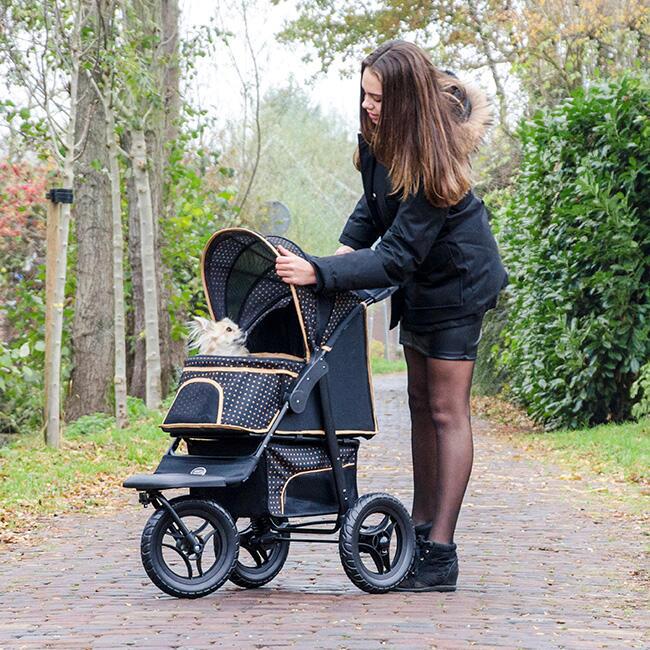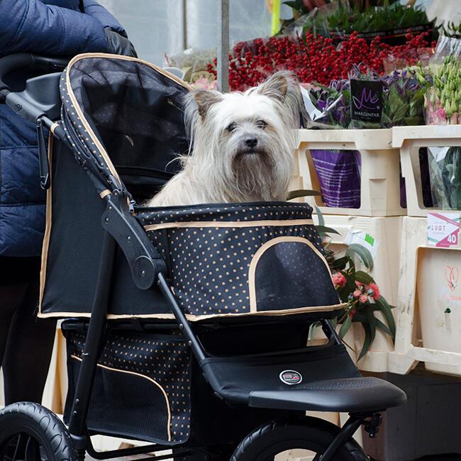 Smart og innovativ hundeklapvogn med store kraftige hjul, der er utrolig let at manøvrere rundt på turen i skoven eller ind til byen.