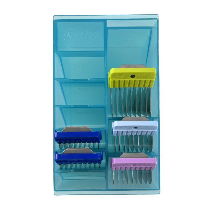 Afstandskamme bruges til at bestemme den faktiske længde en klippemaskine efterlader pelsen med. Disse kamme monteres alle på standard Oster skær 10 eller skær 30 ved hjælp af det unikke fjedersystem, og passer alle Oster klippemaskiner i serierne A5, A6 samt Pro3000i. Passer yderligere til Moser 50.