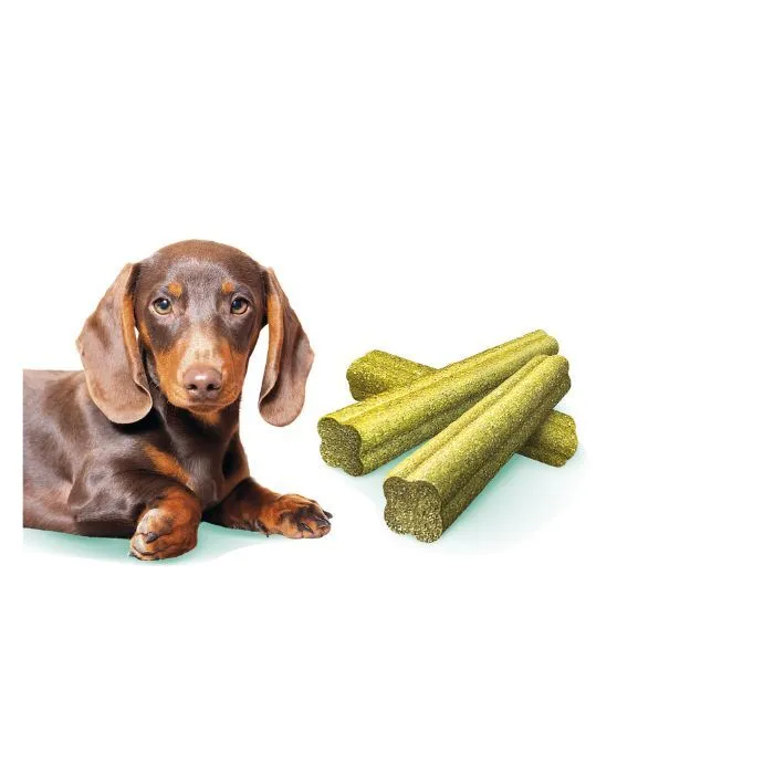 Et kornfrit og vegetarisk alternativ i form af tyggestænger, med smag af mint og salvie. Produceret i EU med fokus på udvalgte ingredienser og semi-moist konsistens.
