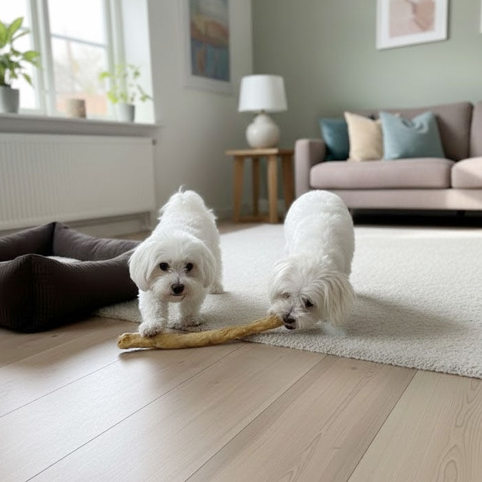 Her får du en tyggerulle er lavet af 100 % tørret kaninskind med pels, præcis som naturen har skabt det, og uden tilsætningsstoffer. Den ufordøjelige pels fungerer som naturlig kostfiber og hjælper med at rense mave og tarme, samtidig med at tyggetiden giver hunden mental stimulering og langvarig tyggeglæde. Perfekt som belønning efter en tur eller som en sund godbid i hverdagen. Trixie Kaninskind Rulle er det oplagte valg for hundeejere, der ønsker en naturlig, sund og enkel snack.