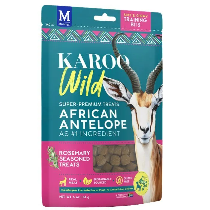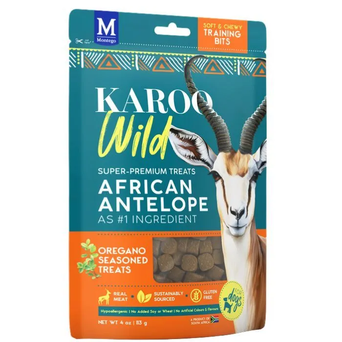 Med KAROO Wild Training Bites får du super premium træningsgodbidder i en praktisk 113g pose. Kombinationen af kornfri opskrift, antilopekød og krydderurter giver en enkel og gennemtænkt snack til daglig træning.