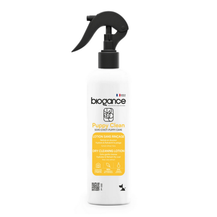 Biogance No Rinse Lotion Puppy er din hvalps nye bedste ven, og den er sammensat af hele 98% økologiske og naturlige ingredienser.