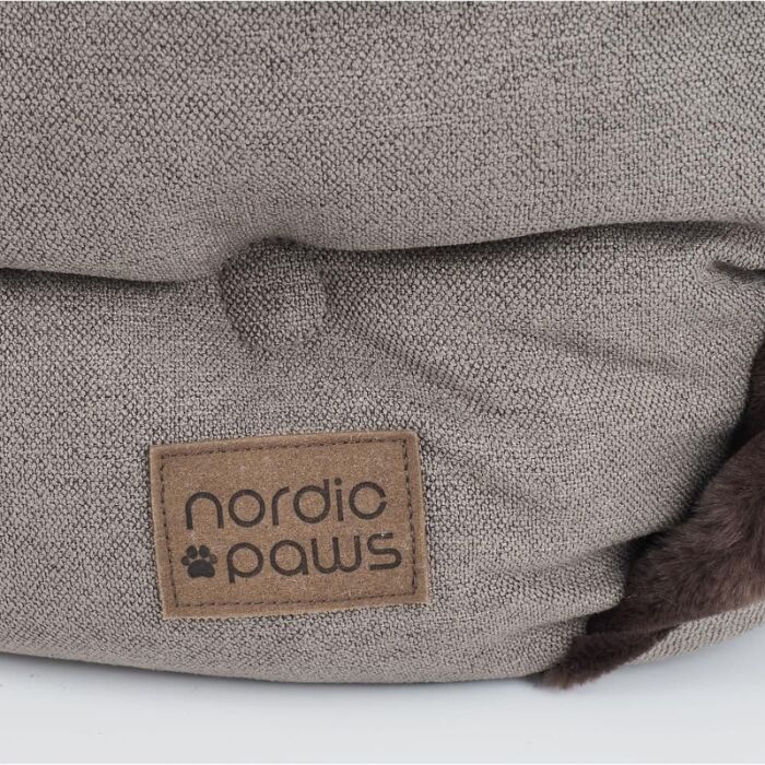 De høje, polstrede sider beskytter mod vind og støj, mens den flotte kombination af grå tekstil og mørkebrun plys giver tasken et eksklusivt look. En perfekt blanding af nordisk design og ren hygge!