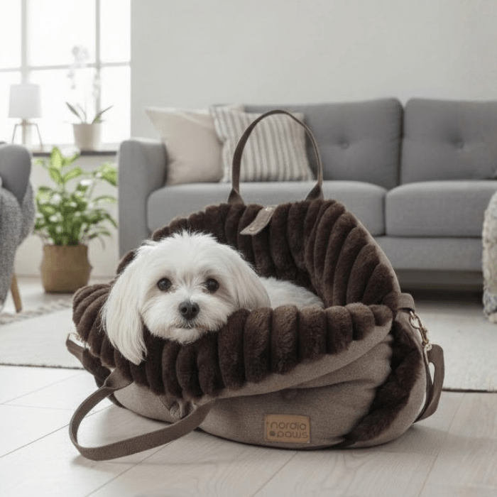 Med Nordic Paws Bæretaske Mara får du en superlækker bæretaske, der gør det nemt (og pænt!) at have din lille hund eller kat med på farten. Tasken er foret med den blødeste plys, så dit kæledyr kan putte sig godt ned og føle sig helt tryg – uanset om I er på café, i bilen eller bare ude at gå en tur.