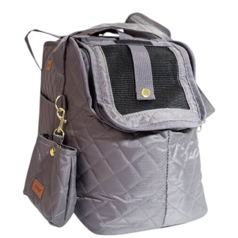 Gør transporten af din hund både nem og stilfuld med denne eksklusive hundetaske, designet til både komfort og funktionalitet. Med sit quiltede ydre og smukke guldfarvede detaljer fremstår tasken elegant, samtidig med at den opfylder alle behov for både hund og ejer. Tasken har net i toppen, som sikrer god ventilation, så din hund får frisk luft under transporten. En praktisk klap kan foldes hen over nettet og beskytte mod kulde og træk – perfekt til vintermånederne. Tasken kan desuden lukkes helt hvis du ønsker at hunden skal have fred lidt, men du kan også åbne så hunden kan stikke hovedet ud og følge med. Den medfølgende lille godbidstaske, der sidder foran, giver ekstra bekvemmelighed på farten. Denne hundetaske kombinerer design og funktion – ideel til hundeejere, der ikke vil gå på kompromis.