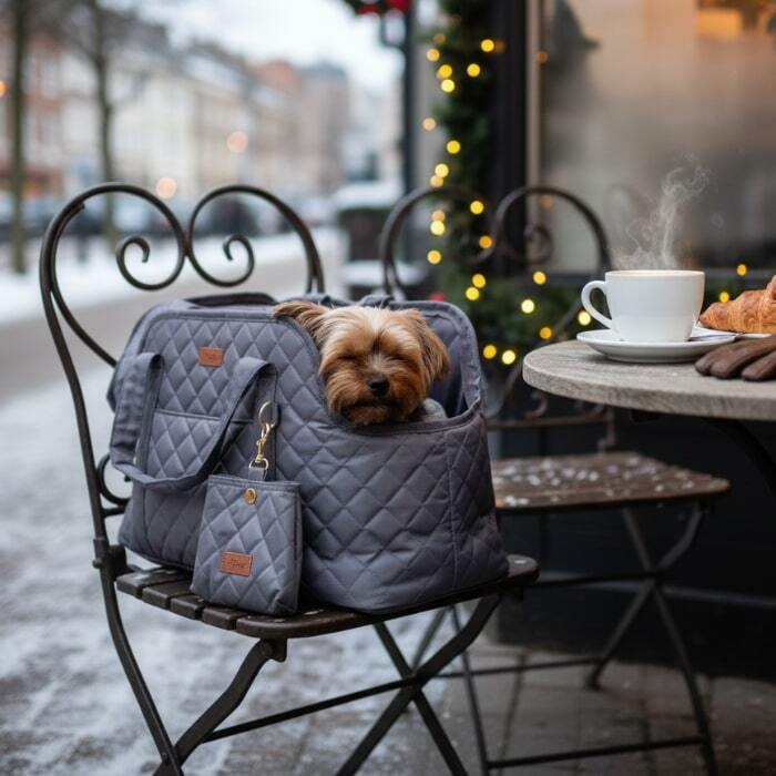 Denne elegante hundetaske er udviklet med fokus på både din og din hunds komfort. Det funktionelle design er spækket med praktiske detaljer, der gør en forskel i hverdagen.