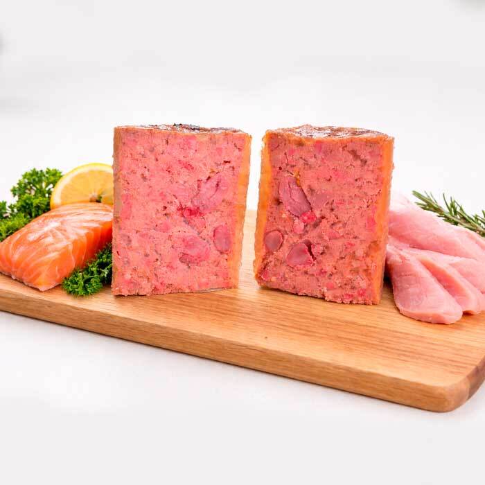 Ingredienser: Kalkun (47%), laks (20%), blåbær (2%), tranbær (2%), hindbær (2%), mineraler (1%), lakseolie (0,3%)