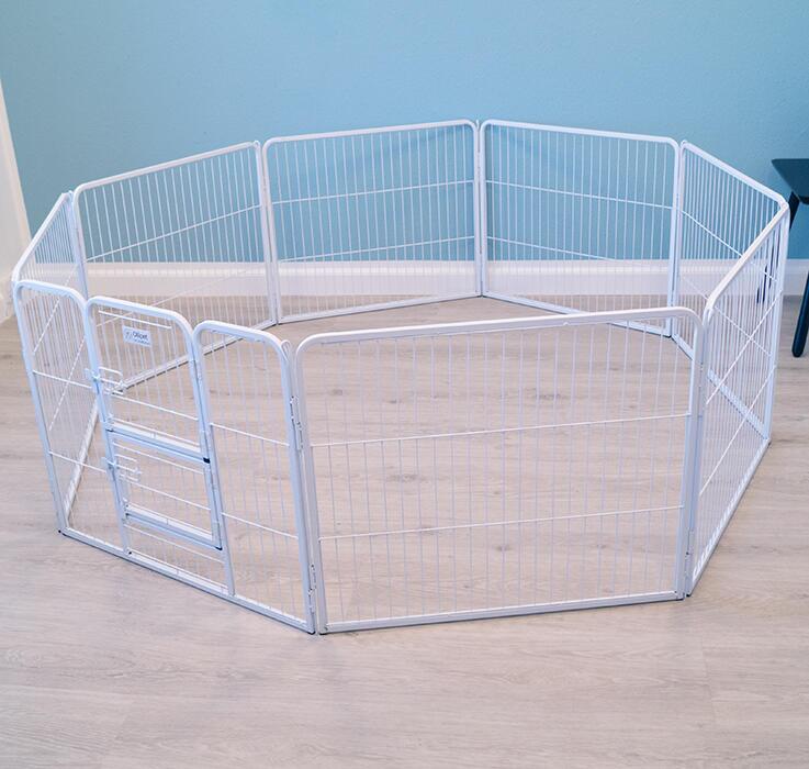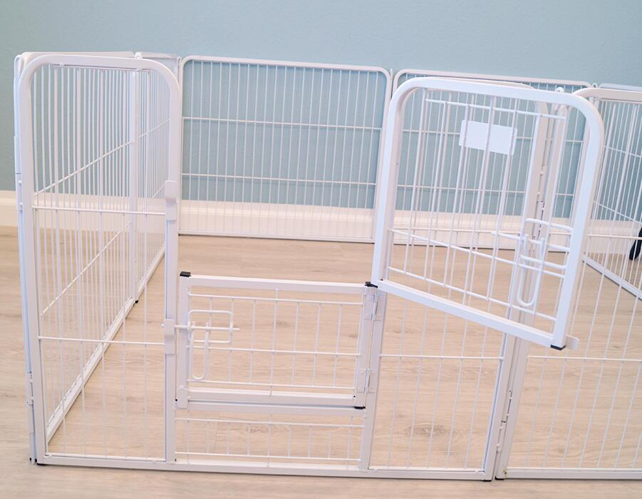 - 2 delt låge, der gør det muligt at holde hvalpe inde i gården, mens hundemor kan springe ind og ud af gården.