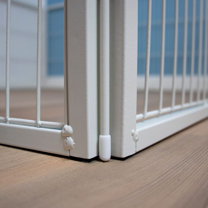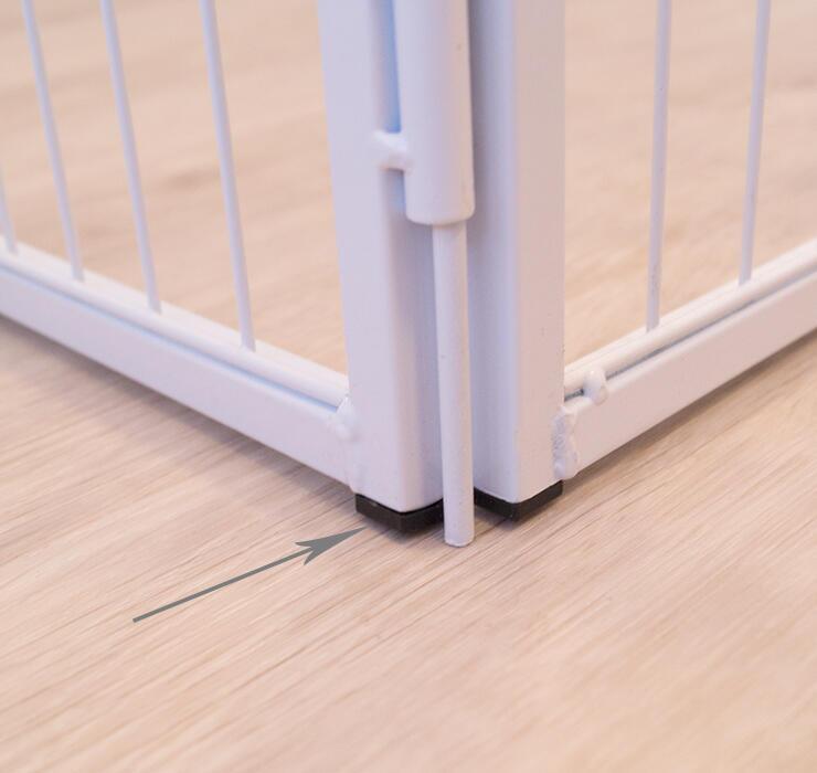 - Med skridsikker gummifødder der beskytter gulvet mod ridser, og sikre at hvalpegården står stabilt på gulvet.