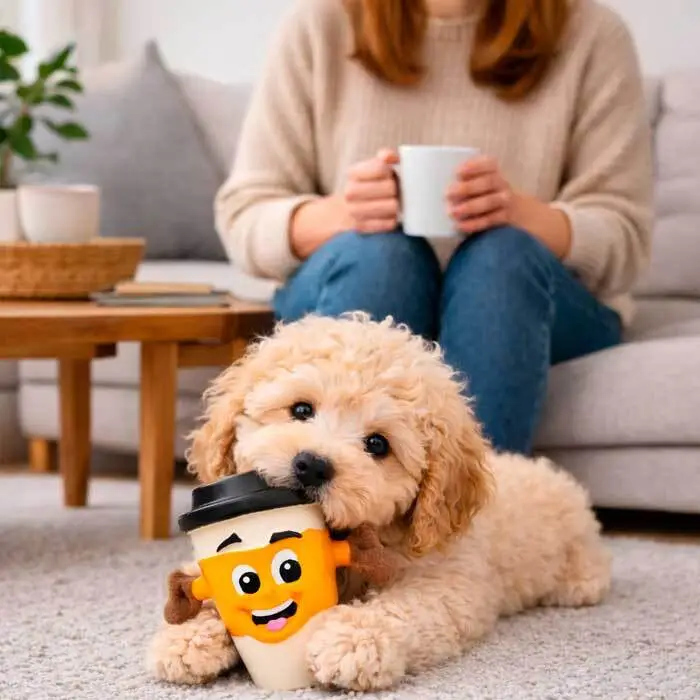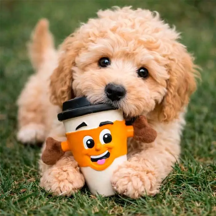 - Sjovt kaffekrus-hundelegetøj med navn Hr. Espresso