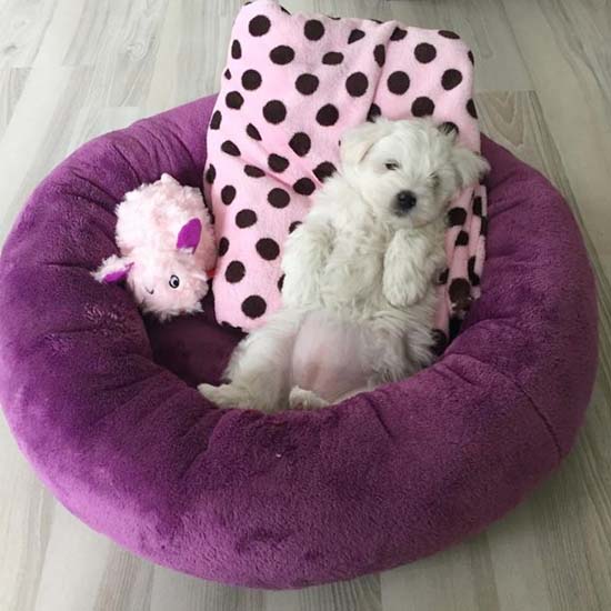 Den lille hvalp nyder livet i sin nye donut hundeseng (50cm)