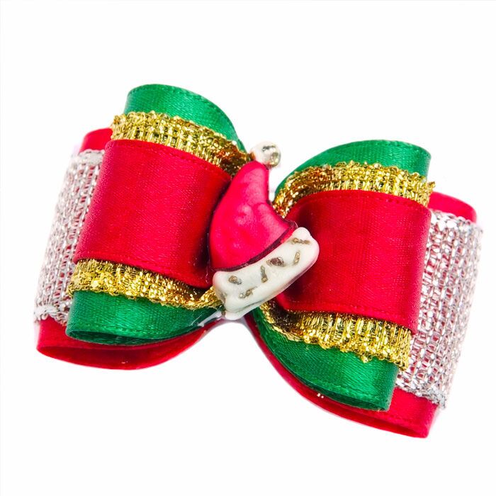 Smuk julesløjfe i silke med lille plast nissehue