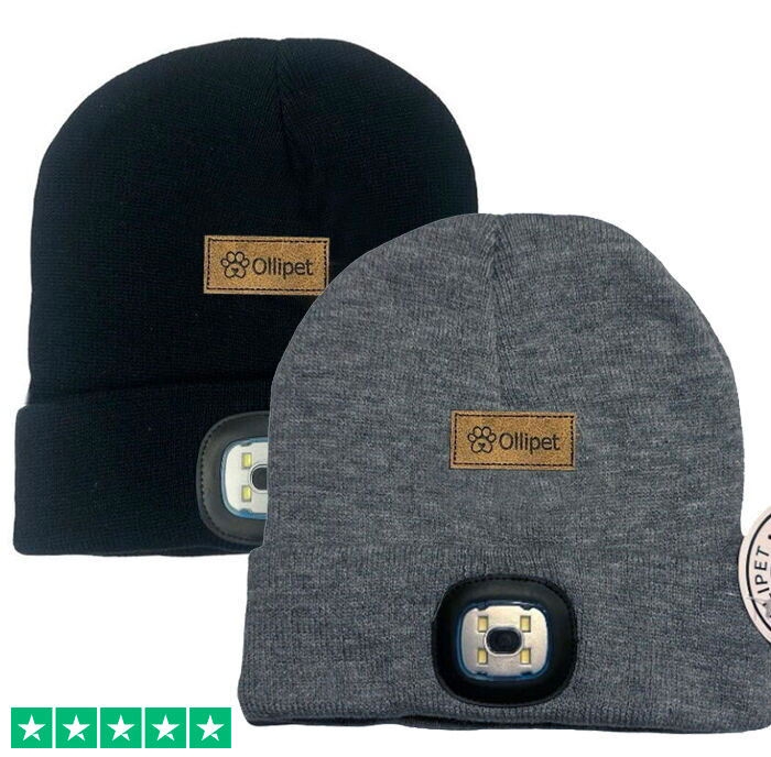 Ollipet strikhue med LED lygte giver lys og varme når du er ude at gå med din hund