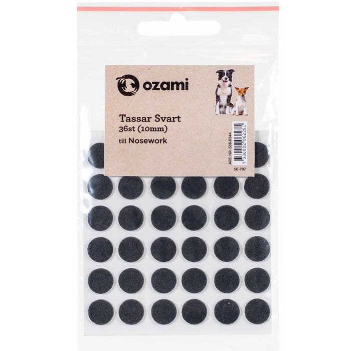 Gør din Nosework-træning endnu mere spændende med Ozami Nosework Tassar – små sorte duftbærere i filt, der er perfekte til hundetræning i Danmark.