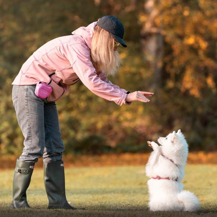 Du åbner let tasken, så du hurtigt kan fiske et par lækre godbidder op af den. Anvend den smarte treat bag på træningspladsen eller når du er ude at gå med din hund.