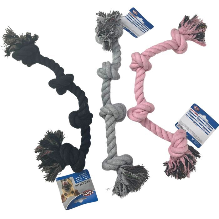 Se f.eks. vores populære bomuldsreb; et solidt og holdbart reb i bomuld, som alle hvalpe vil elske! Rebet er rigtig godt for dine hvalps tænder, fordi hvalpen får ’flosset’ sin små hvalpetænder mens den tygger og lege. Vær opmærksom på, at når rebet er blevet leget med længe nok og begynder at trevle, så er det tid til at smide det ud og anskaffe sig et nyt.