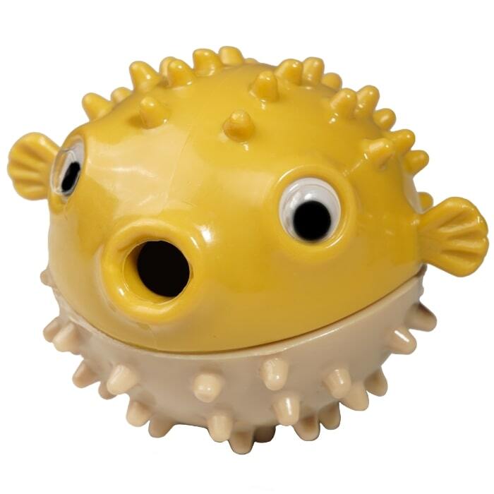 Gør legetiden ekstra underholdende med Ollipet BubbleBlow fish silicone legetøj – et farverigt og fantasifuldt hundelegetøj formet som en puffet fisk. Med sit sjove design og silikonekrop er denne lille fætter klar til at aktivere din hunds naturlige legeinstinkt. Legetøjet har en indbygget klokke, som ringer lystigt, når fisken rystes eller kastes – en uimodståelig lyd, der fanger opmærksomheden og holder legen i gang. BubbleBlow-fisken er perfekt til både hvalpe og voksne hunde, der elsker at bide, rulle og lege aktivt.