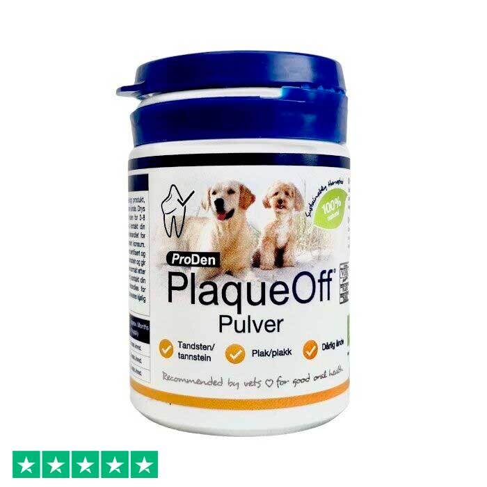 PlaqueOff hovedingrediens er pulver fra havalge. Denne specielle havalge er yderst effektiv mod plakdannelser og tandsten der let sætter sig på hundens tænder, hvis man ikke børster tænder på sin hund. Ved dagligt brug af PlaqueOff vil du efter 4-8 uger se store resultater og dín hund vil få bedre ånde og sunde tænder og tandkød.