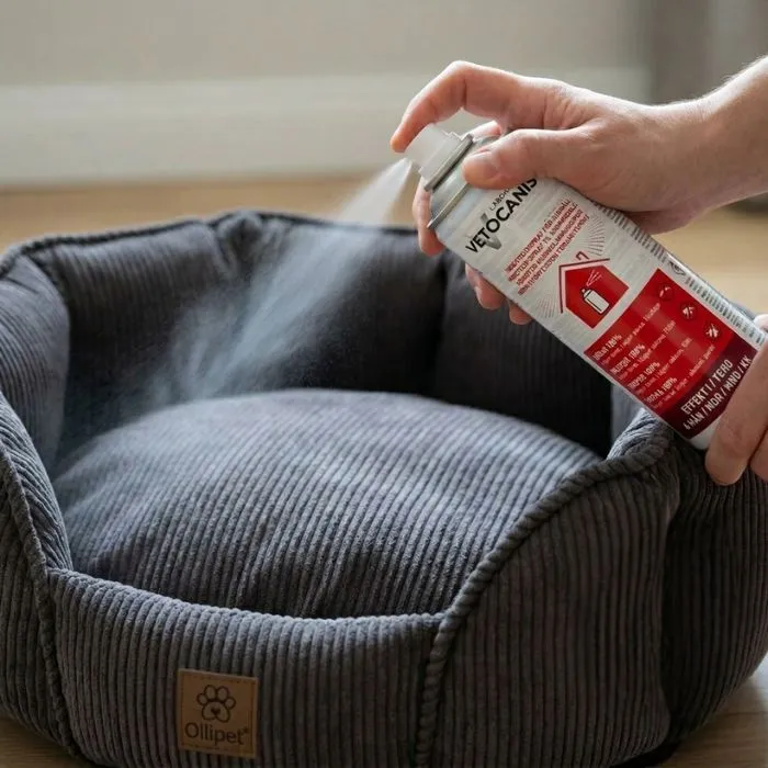 Vetocanis insekticidspray til husholdninger er en effektiv løsning til målrettet behandling af ikke-vaskbare møbler og tekstiler som hundesenge, tæpper og lænestole. Sprayen dræber 90 % af flåter, lopper og loppelarver og har dokumenteret effekt i op til 6 måneder.