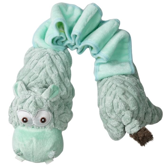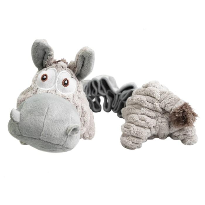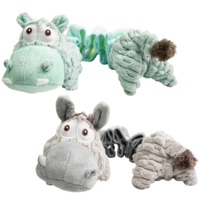 Den søde og finurlige figur kommer i to charmerende varianter – Eddie Æsel i grå og Happy Hippo i mintgrøn. Begge er udformet i et taktilt design, der indbyder til interaktiv leg, og de mange folder på maven er perfekte til at gemme små godbidder og aktivere din hunds naturlige snuseinstinkt. Et legetøj, der stimulerer både krop og hjerne – og samtidig fungerer som en blød ven i kurven.