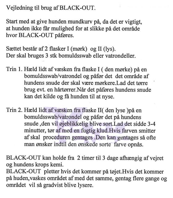 OBS: Får du Blackout på huden, vask øjeblikkeligt med varmt vand, ellers får du sorte mærker, der skal slides af.
