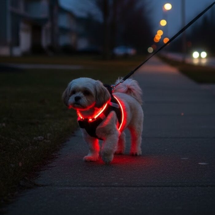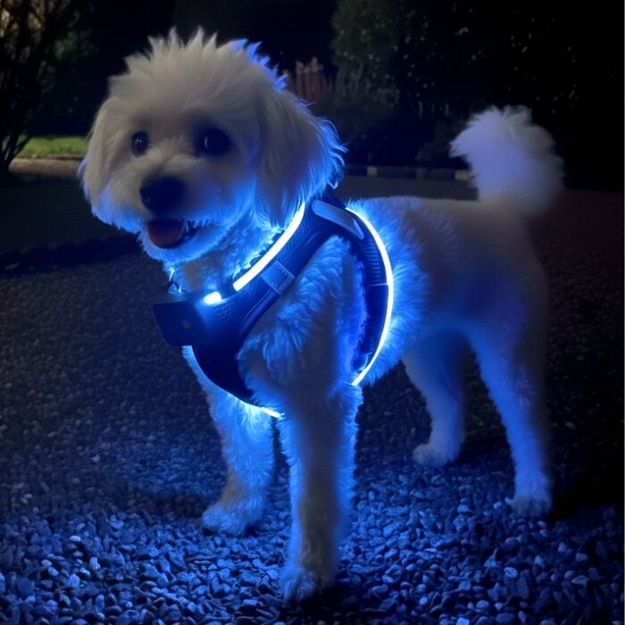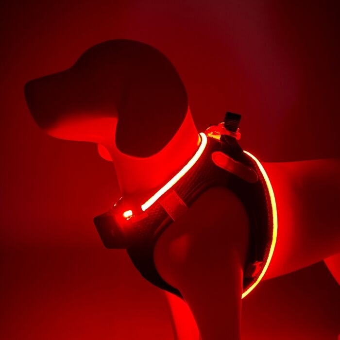 Smart step-in hundesele med LED-lys, giver høj synlighed på gåturen