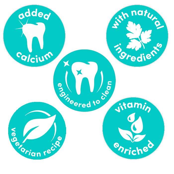 • Naturlig tandpleje – den unikke tekstur bidrager til mekanisk rengøring af tænder og tandkød
