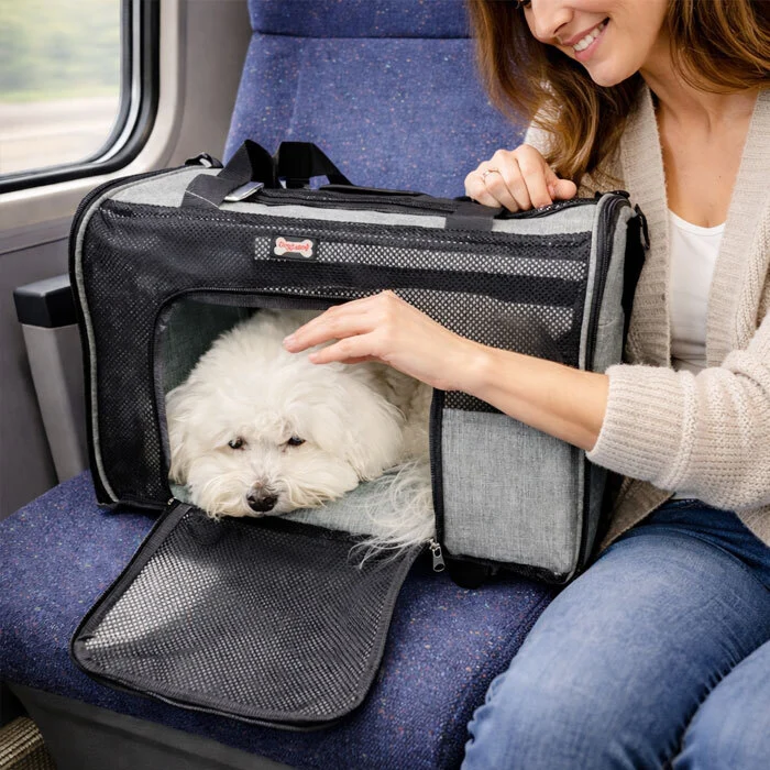 Tasken har fire praktiske lynlås åbninger: en i toppen, en i siden og en i hver ende. Dette gør det nemt for dig at få adgang til dit kæledyr, uanset hvordan tasken står.