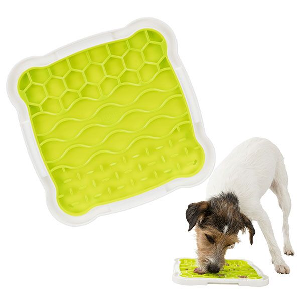 Lick'nSnack Platter har flere anvendelsesmuligheder og kan også fryses! Dette er et alletiders aktivitetslegetøj, der kan give god underholdning. Når hunden slikker, får den mere ro, og pladen kan således også bruges til at bringe ro til hjemmet.