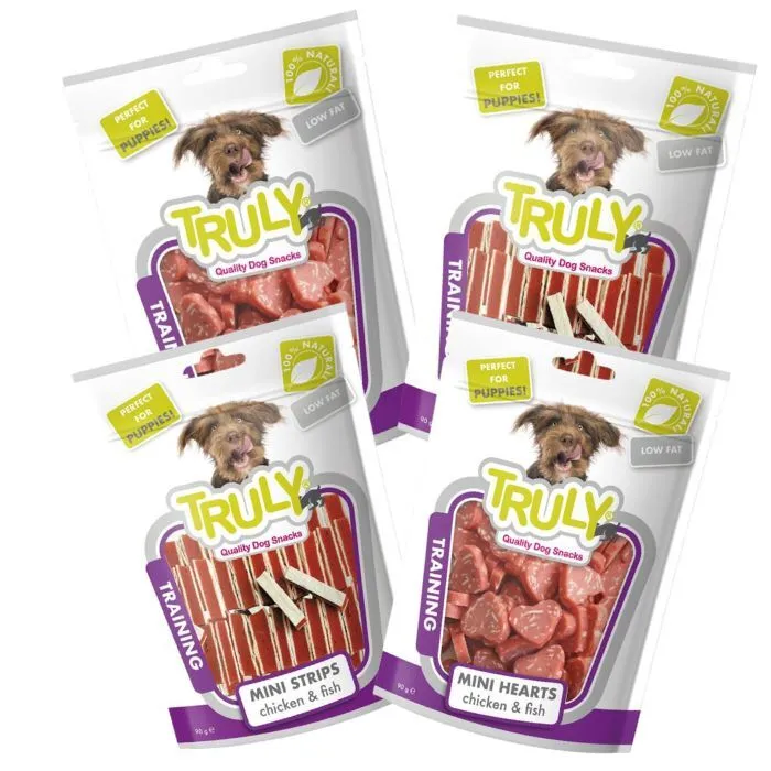 Gør træning og belønning ekstra nem med dette pakketilbud fra Truly Delight med hvalpegodbidder 4 poser. Du får to forskellige varianter med bløde og smagfulde bidder, der er velegnede til små hunde og hvalpe.