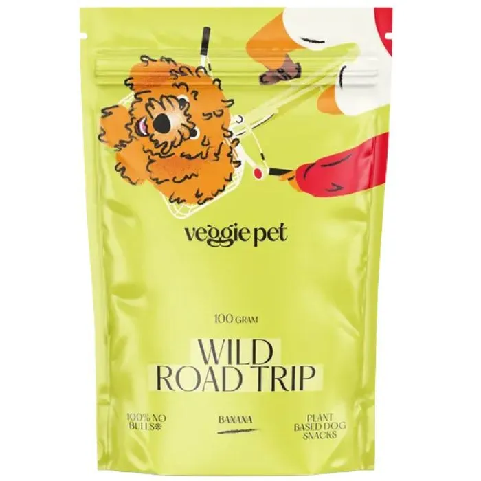 VeggiePet Wild Road Trip Banana er plantebaserede hundegodbidder med en mild banansmag og en sprød tekstur, der gør dem nemme at bruge som en lille belønning i hverdagen.