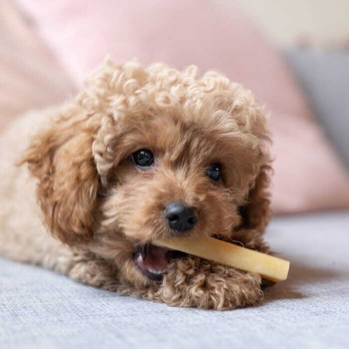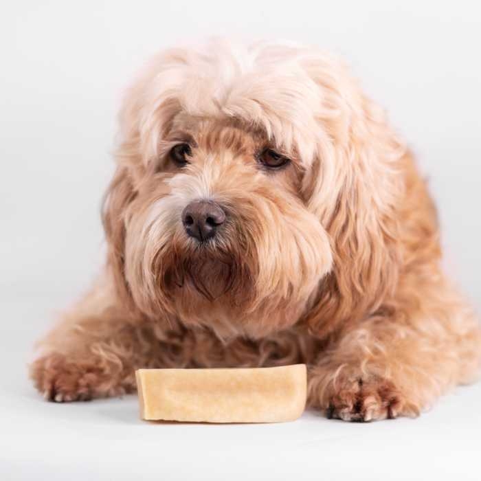 Bemærk: Sørg for altid at holde øje med din hund, mens den tygger på benet, da der er risiko for, at den kan få problemer, hvis den forsøger at sluge for store stykker. Sørg også for, at din hund altid har adgang til frisk vand, da denne snack kan gøre den tørstig.