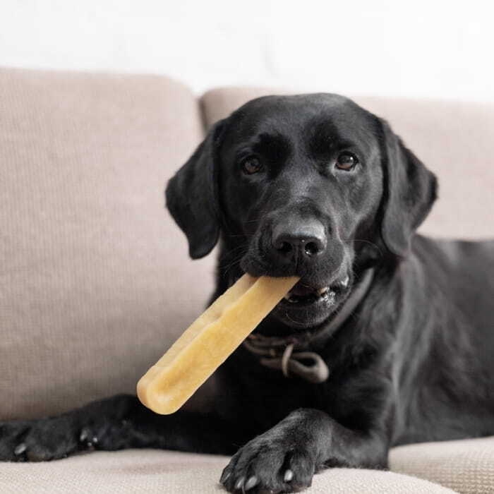 Forkæl din hund med et lækkert, sundt og langtidsholdbart tyggeben! Yaki Tyggeben | Peanutbutter er en 100% naturlig vegetarisk snack, baseret på en autentisk Himalaya-opskrift, som giver din hund massere af tyggefornøjelse. Tyggebenet er lavet af hård ost og tilsat en smag af peanutbutter samt et strejf af mint. Den ekstra hårde konsistens sikrer en lang tyggetid, hvilket både beskæftiger og beroliger din hund.